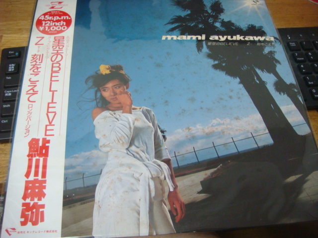 機動戦士Zガンダムの 主題歌 「Z・刻を越えて」「星空のBELIEVE」をカプリングした12インチシングルです。「Z・刻を越えて」はロングバージョンが収められてます。ピンナップにザクなどがあしらわれており、レーベルは鮎川麻弥とシャアとなってます。ジャケットに汚れが見受けられます。