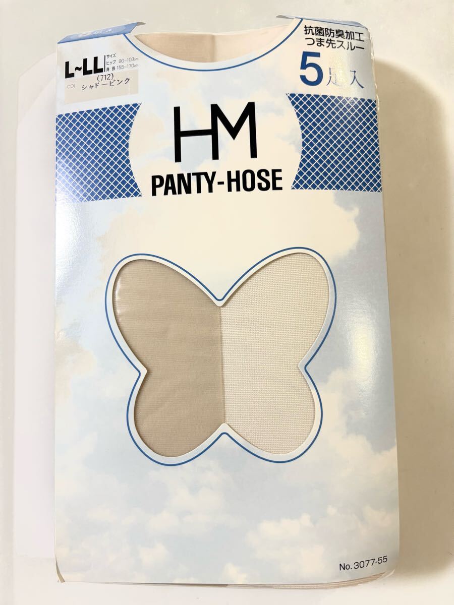 > 5足組 大きめ L〜LLサイズ ハナエモリ 透明感 薄手 つま先スルー パンティストッキング パンスト ストッキング シャドーピンク