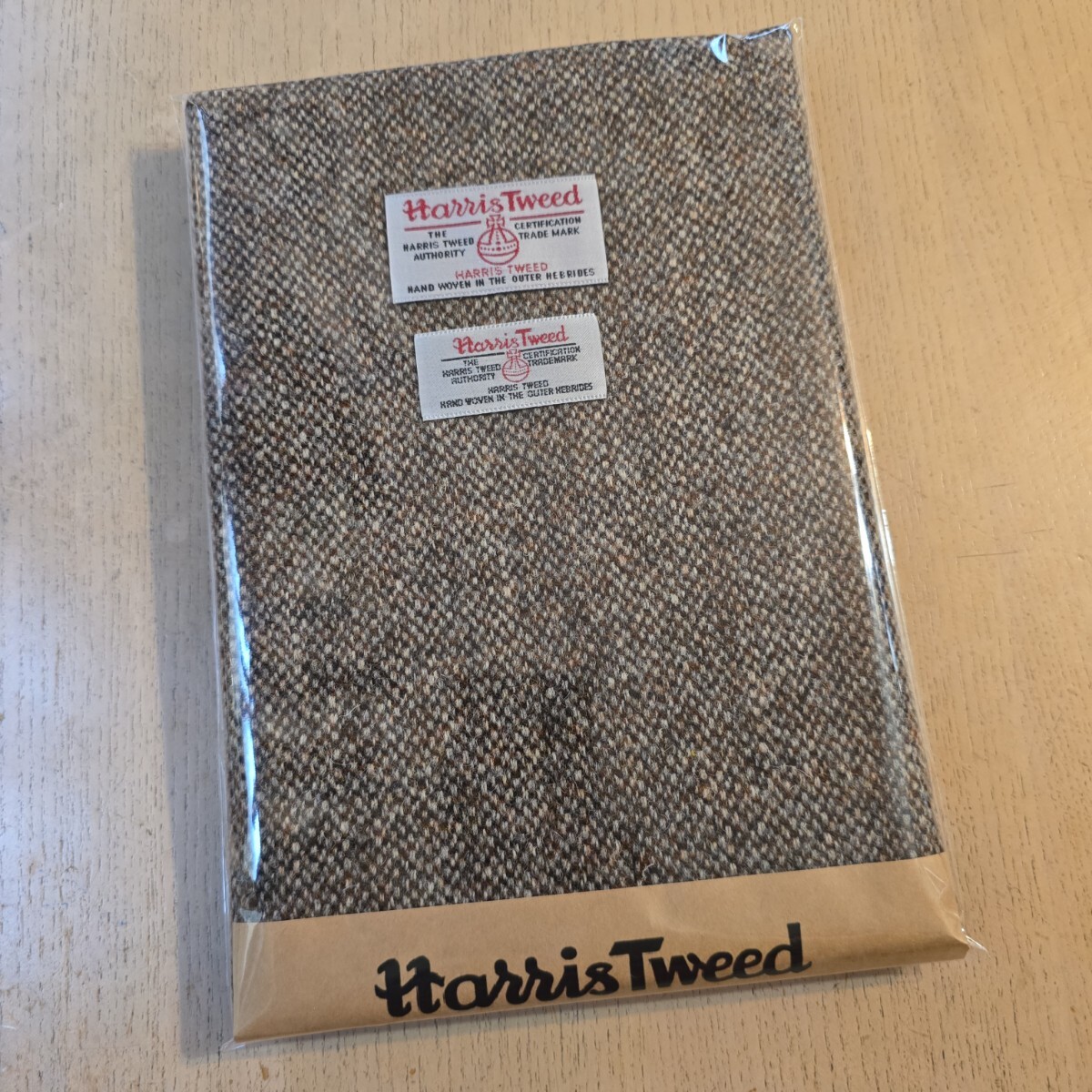 - 【新品】英国産 Harris Tweed/ハリスツイード カットクロス 70cm×50cm タグ2枚付 ハギレ 生地 ウール100% 茶色 ヘリンボーン グレー