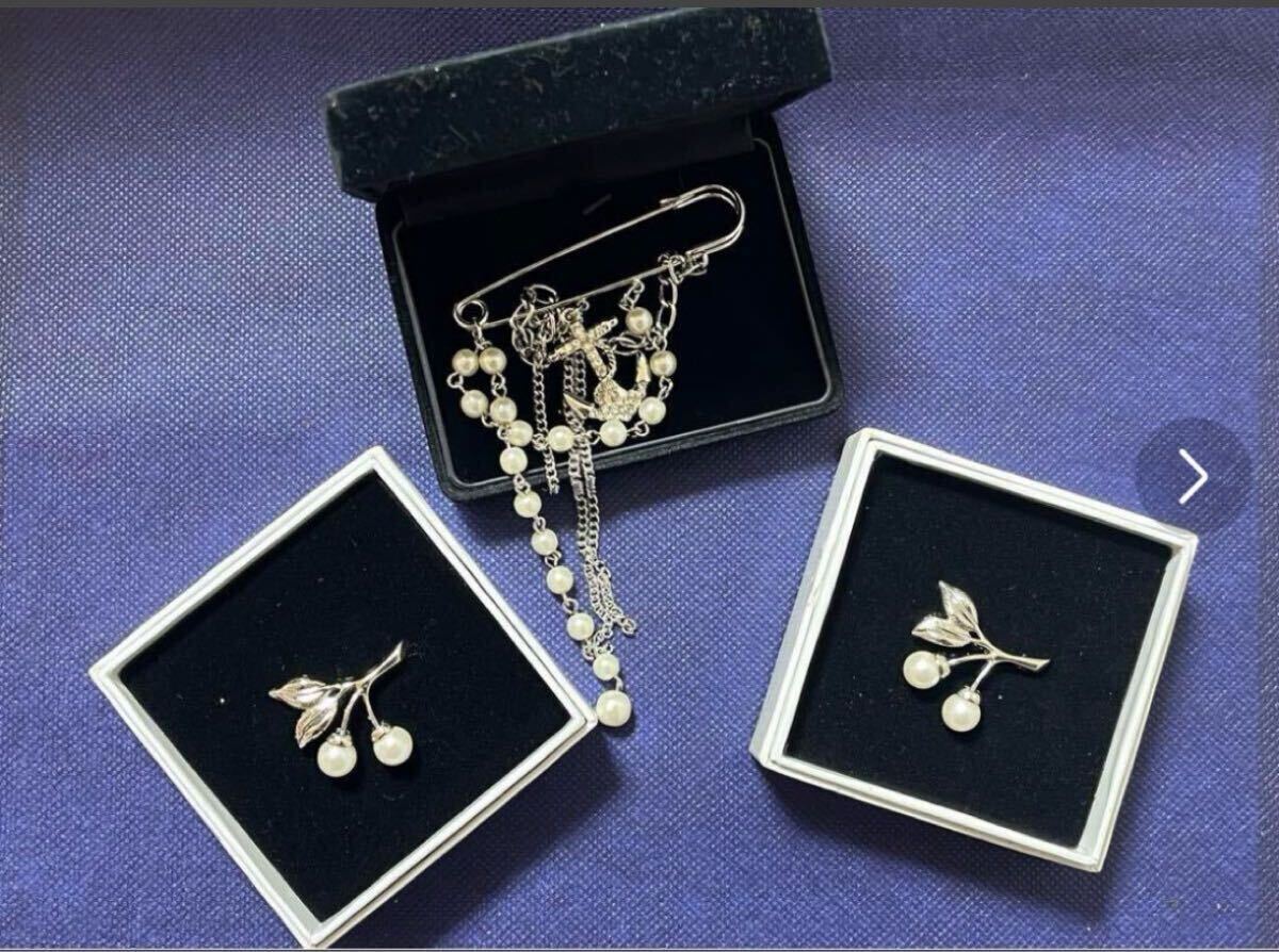 - アクセサリー パール ブローチ 3点 ①②サクランボ ③碇 いかり モチーフ