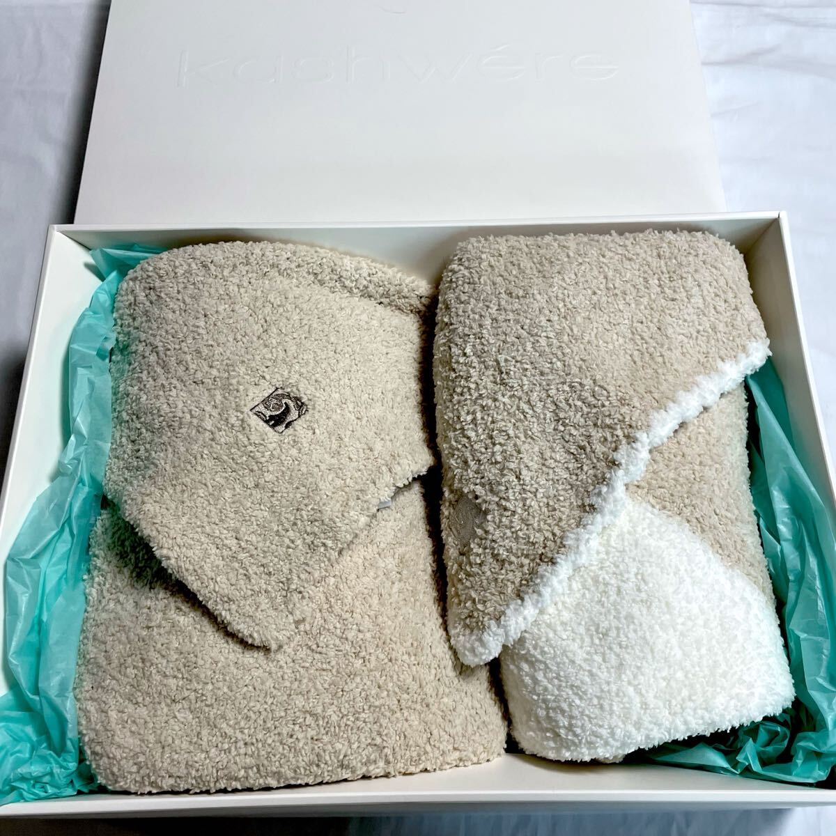 > カシウエア kashwre ベビー ブランケット センターストライプ ベージュ ホワイト系 2枚セット 未使用 タグ付き 出産祝い BABY