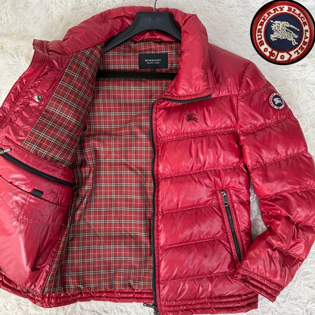 - 希少L 極美品 バーバリーブラックレーベル 刺繍ホースロゴ 袖ワッペン 光沢 ノバチェック ダウンジャケット メンズ BURBERRY BLACK LABEL