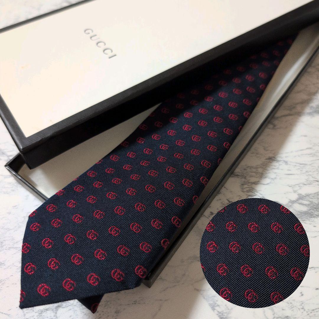 - 【極美品】GUCCI グッチ ネクタイ GG マーモント ジャガード ネイビー 箱付き