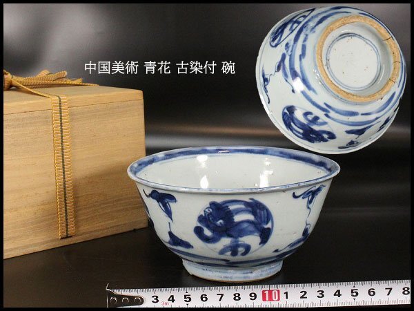 > 【金閣】中国美術 青花 古染付 碗 φ14.5cm 旧家蔵出 送料無料(AZ582)