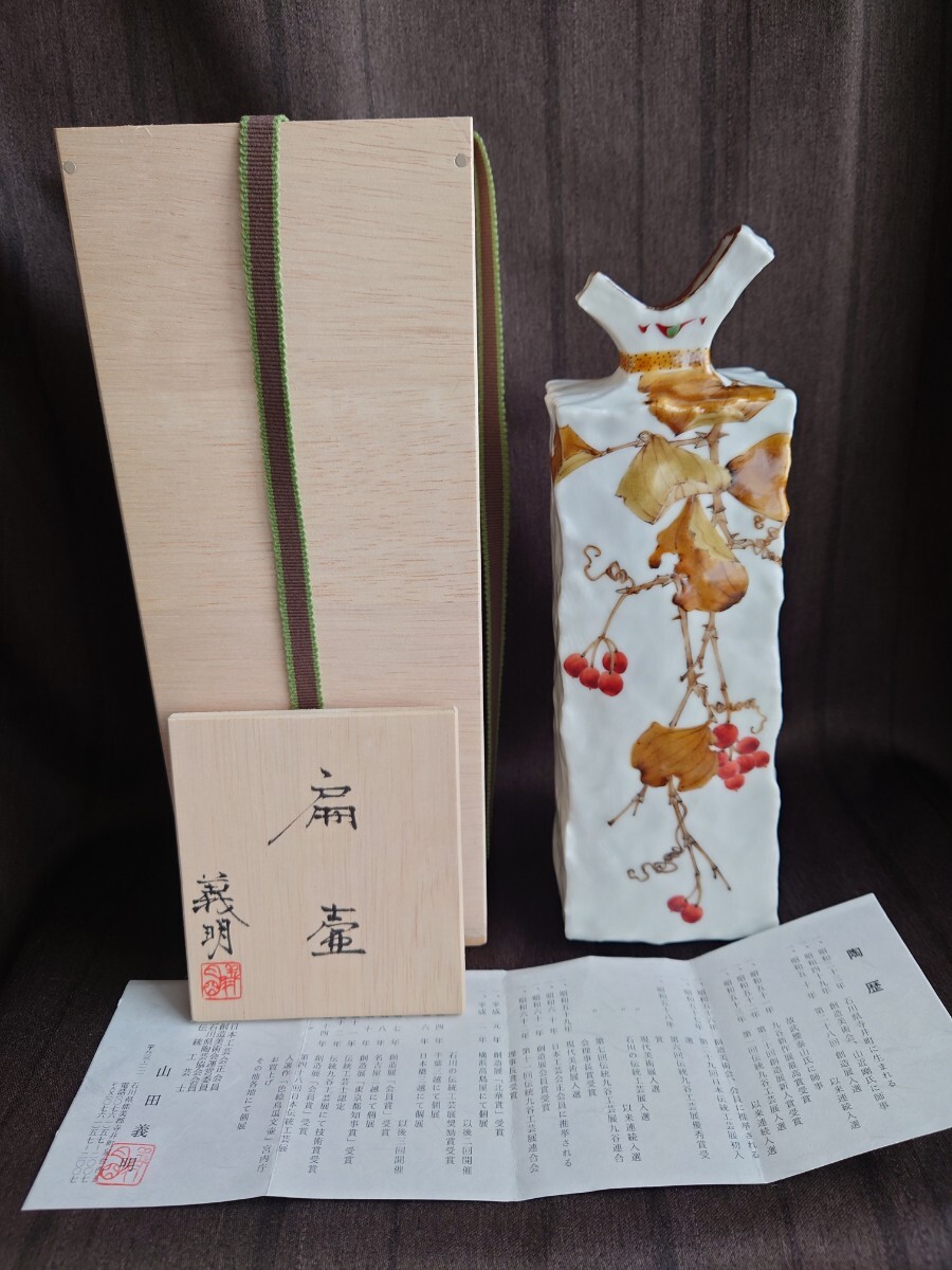 - 九谷 山田義明 野葡萄文 扁壺 名工 人気作家