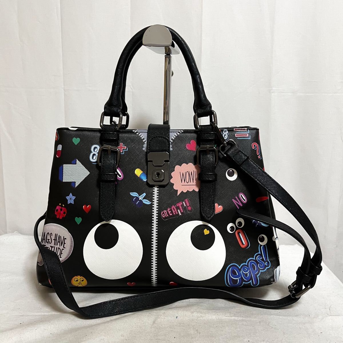 - 和862★ EYE THEME アイテーマ ハンドバッグ ショルダーバッグ 総柄 ブラック レディース