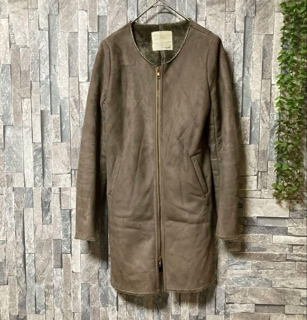 - 【Sonny Label】ノーカラー フェイクファーコート 金ジップ (S)