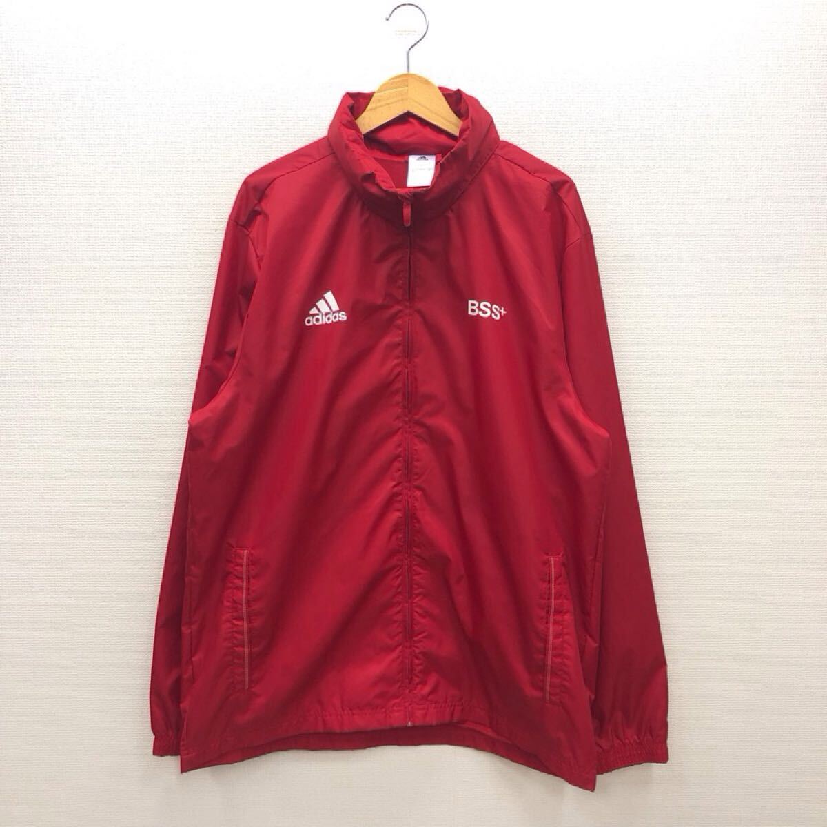 > 【GJ063】adidas 2XOサイズ ウィンドブレーカー レッド 収納フード付き 袖口ゴム ブランド古着 アディダス スポーツウェア 送料無料