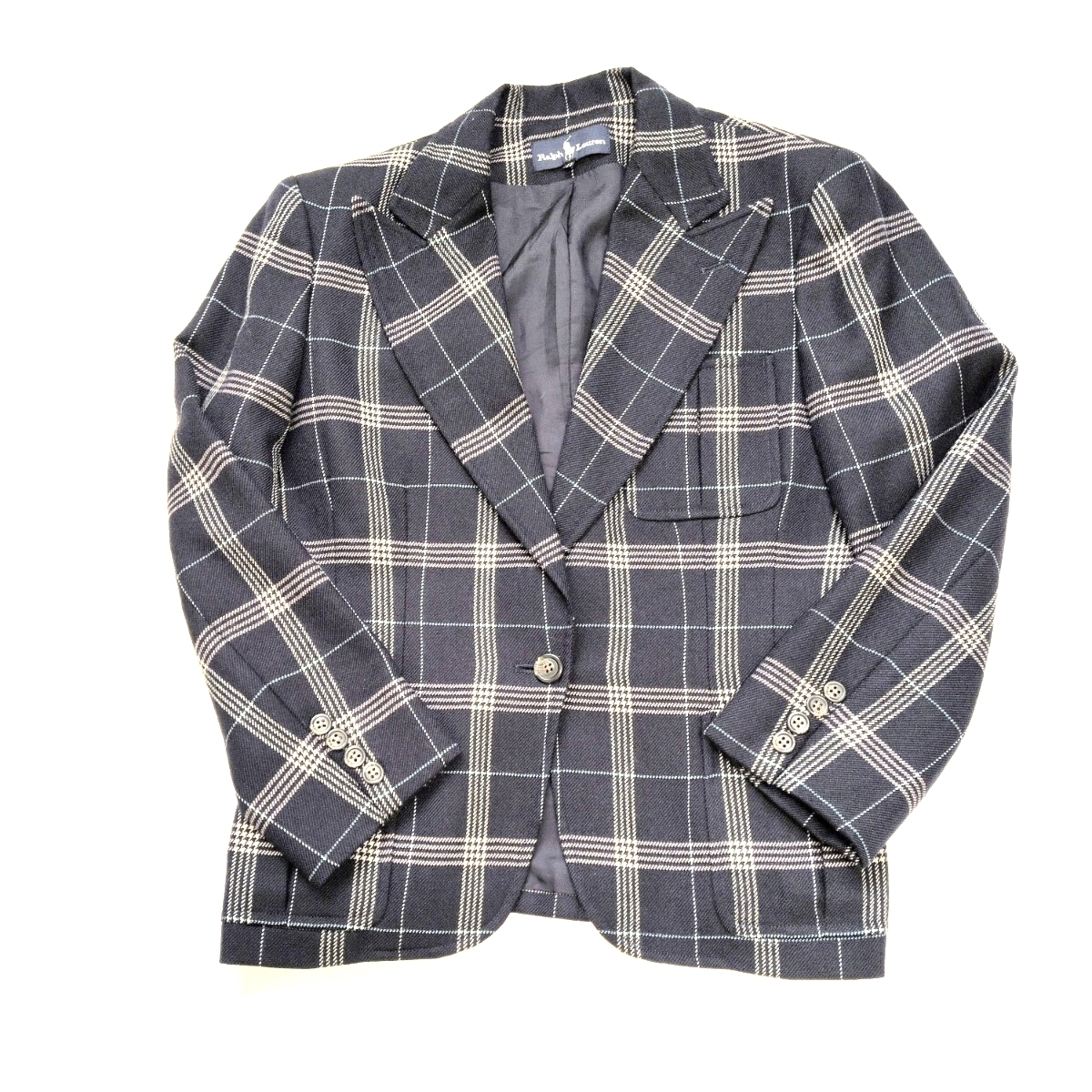 - 1円〜 Ralph Lauren ラルフローレン ダブルジャケット テーラードジャケット ネイビー系 チェック柄 レディース11号 Lサイズ ウール100%