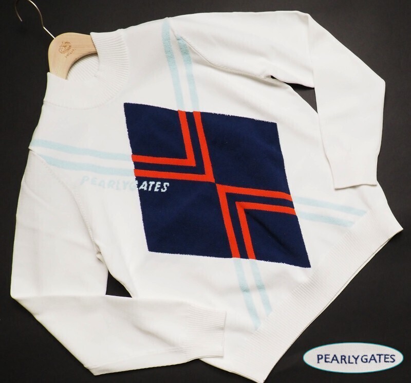 > 新品正規37400円 PEARLY GATES パーリーゲイツ アーガイルパターン ニット レディース1(M)ホワイト(030) 1274902