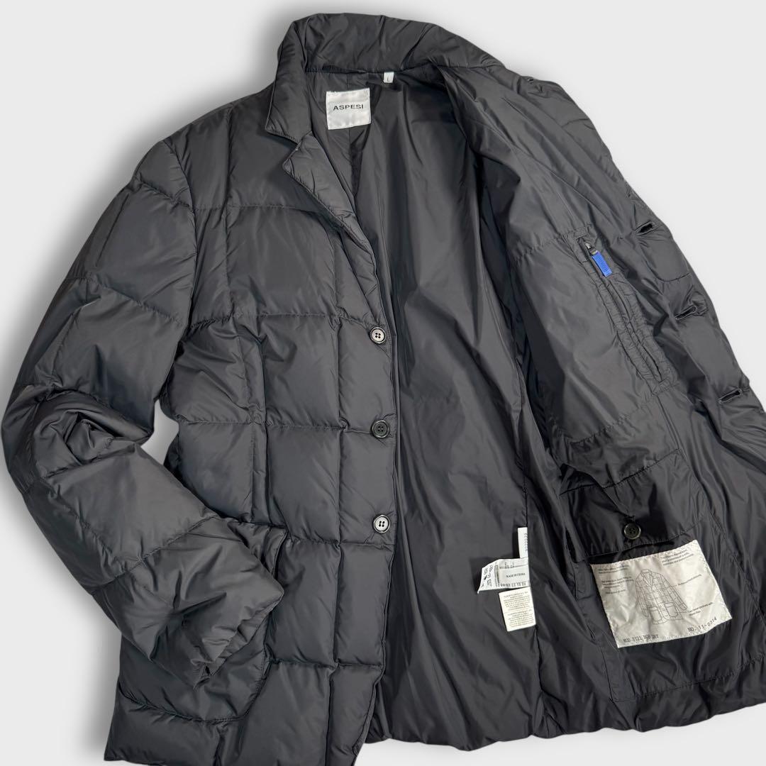 > 美品 L ASPESI アスペジ ライトダウンジャケット チャコールグレー メンズ ビジネス カジュアル 軽量 テーラード