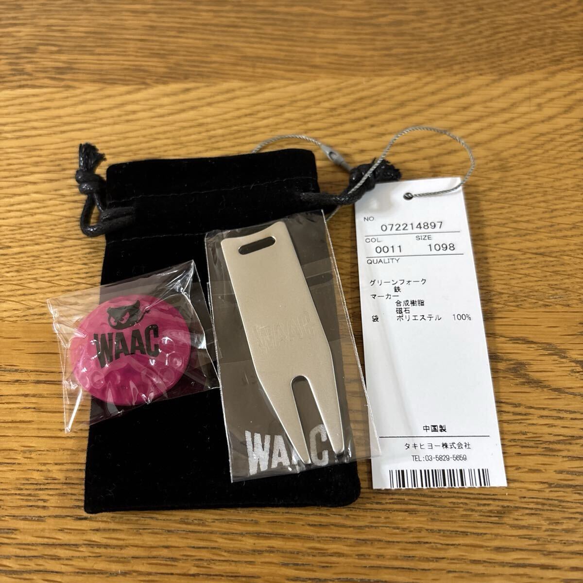 > WAAC ワック マーカー付グリーンフォーク パープル×シルバー系 巾着ケース付 未使用品 送料込