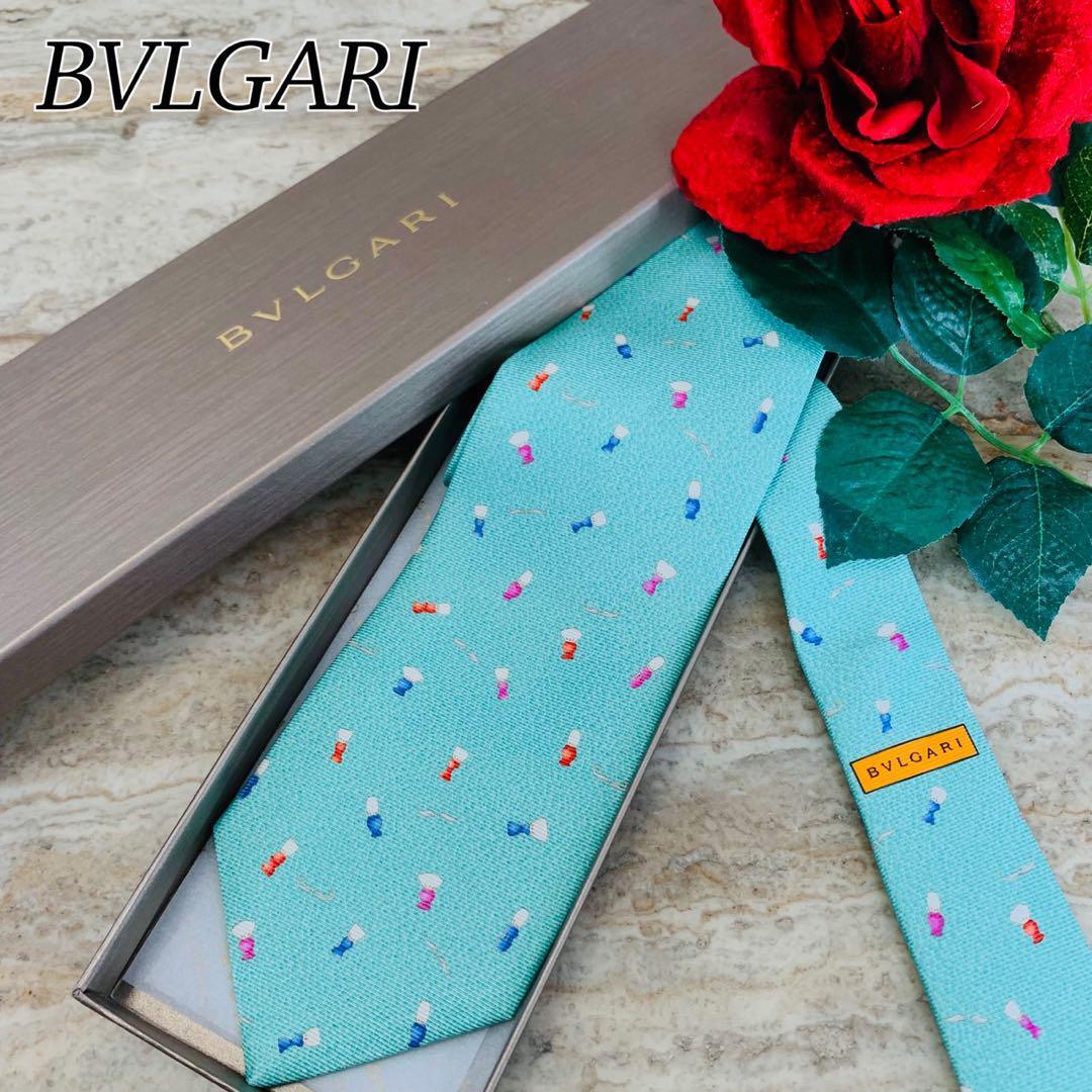 - N105 新品未使用 ブルガリ セッテピエゲ 総柄 ブルー系 ネクタイ メンズ