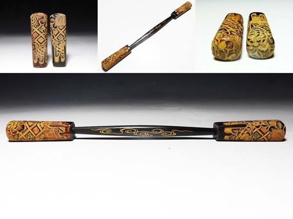 - 【桃】アンティーク髪飾り:堆黒花紋様笄