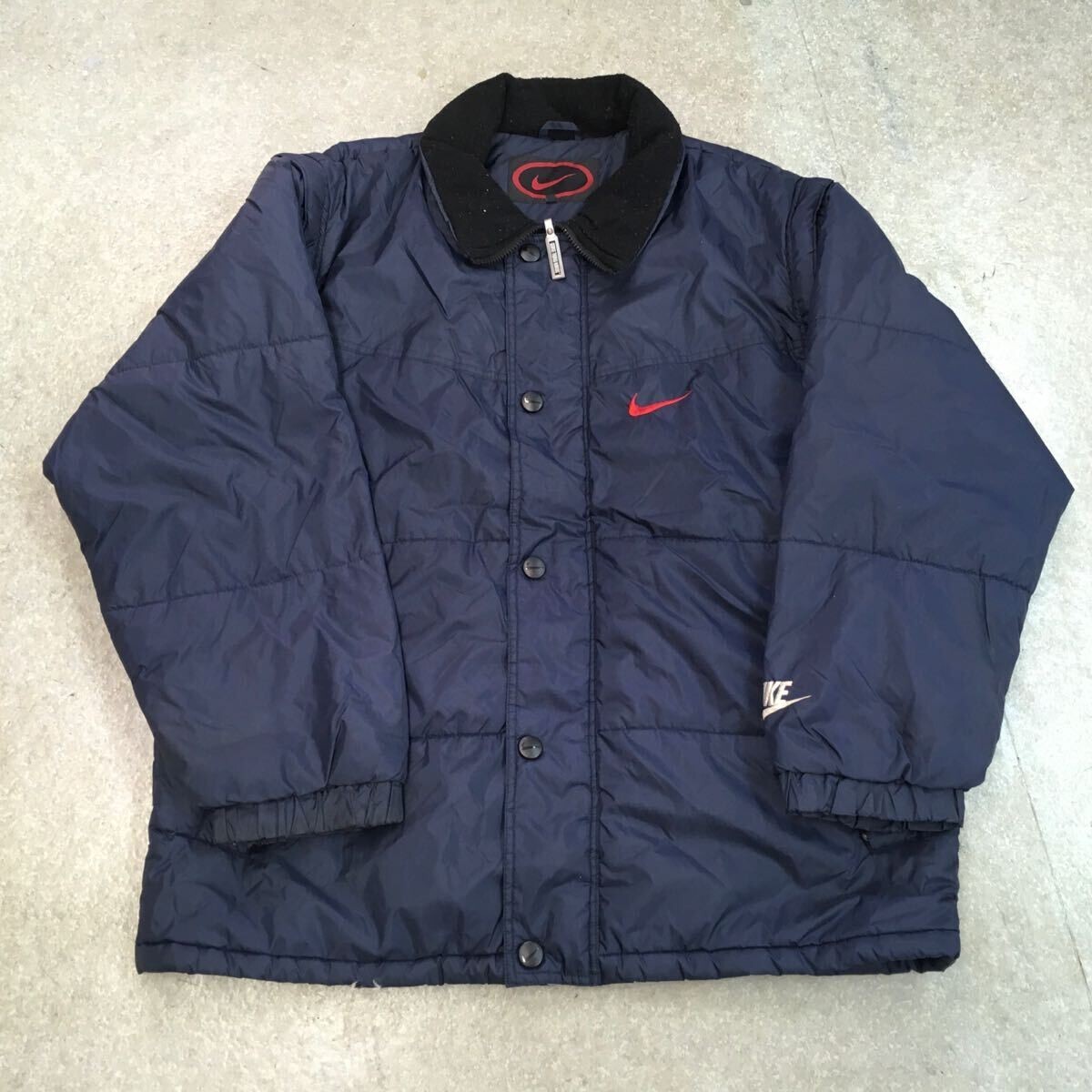 > HY2259 NIKE ナイキスポーツウェア アウター ブルゾン 中綿ジャケット ネイビー M キズあり 袖取り外し可能 袖口ゴム伸び