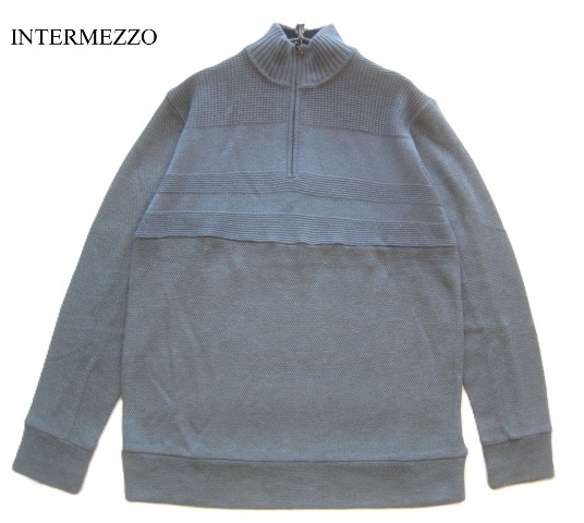 > 美品!!インターメッツォ INTERMEZZO*定価2.4万 立ち襟ハーフジップ アクリルレーヨンニットセーター L グレー ダーバン D'URBAN