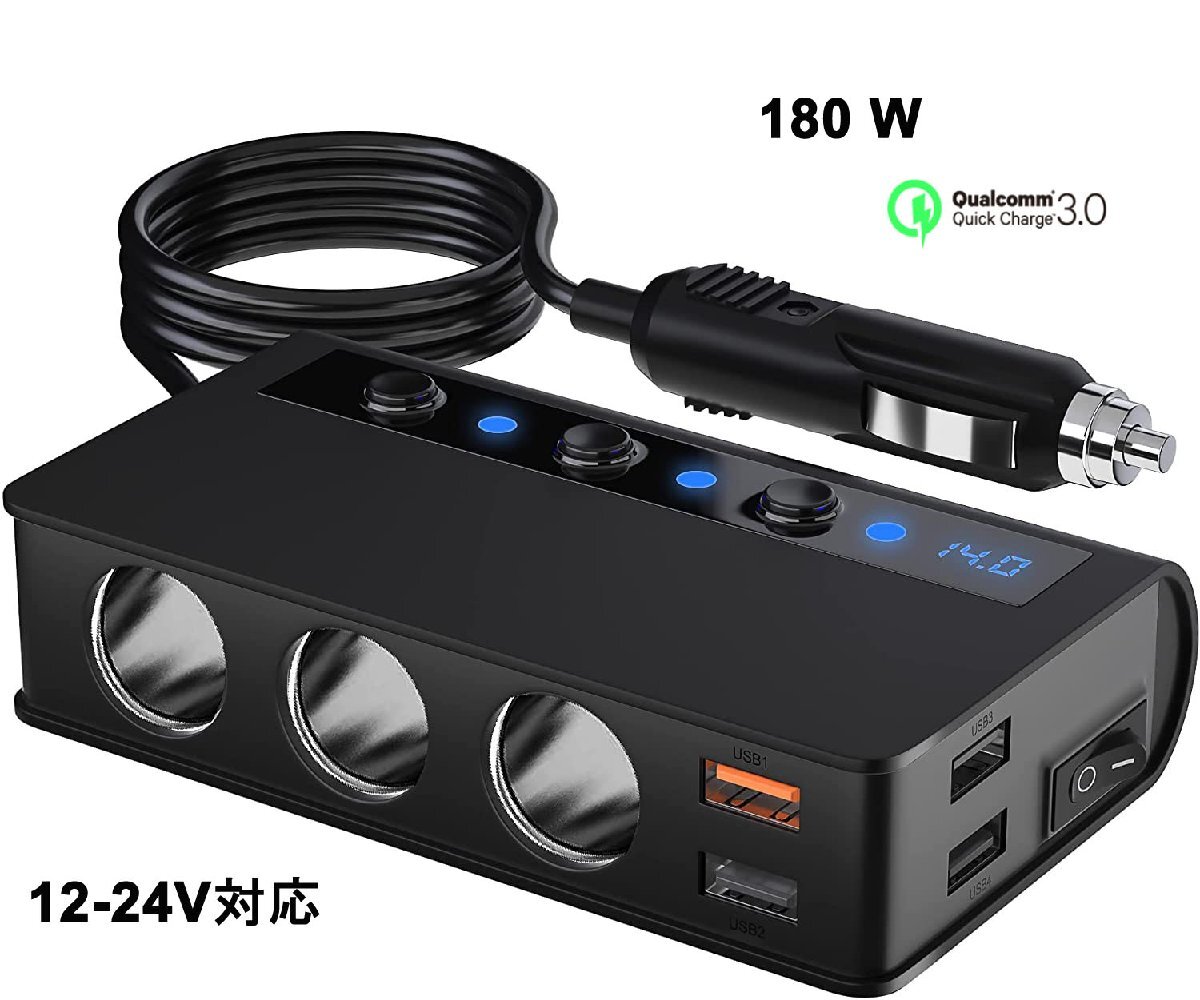 - 3連シガーソケット カーチャージャー 車載充電器 急速充電 12/24V対応