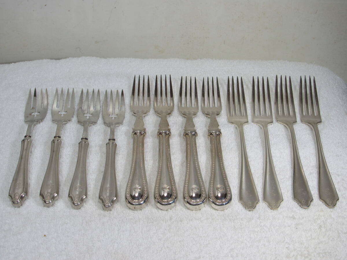 - 銀製品 フォーク 3種類 12本 E,P,E,S 重さが50g~70g サイズは17cm~19cm厚さは2mm 中古美形