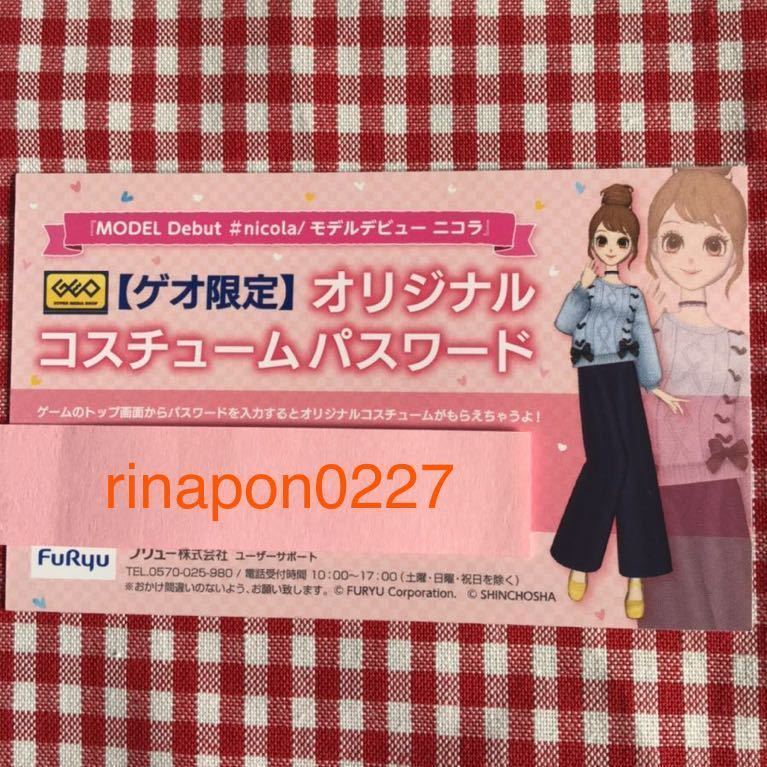 - SWITCH 「 モデルデビュー ニコラ 」ゲオ 特典 「 オリジナル コスチューム パスワード 」/ソフトなし 特典 パスワードのみ GEO モデビュ