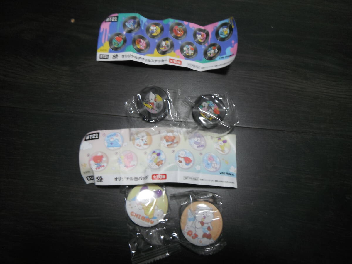 - 【未開封】くら寿司 BT21 オリジナル アクリルステッカー 缶バッジ 4個まとめて