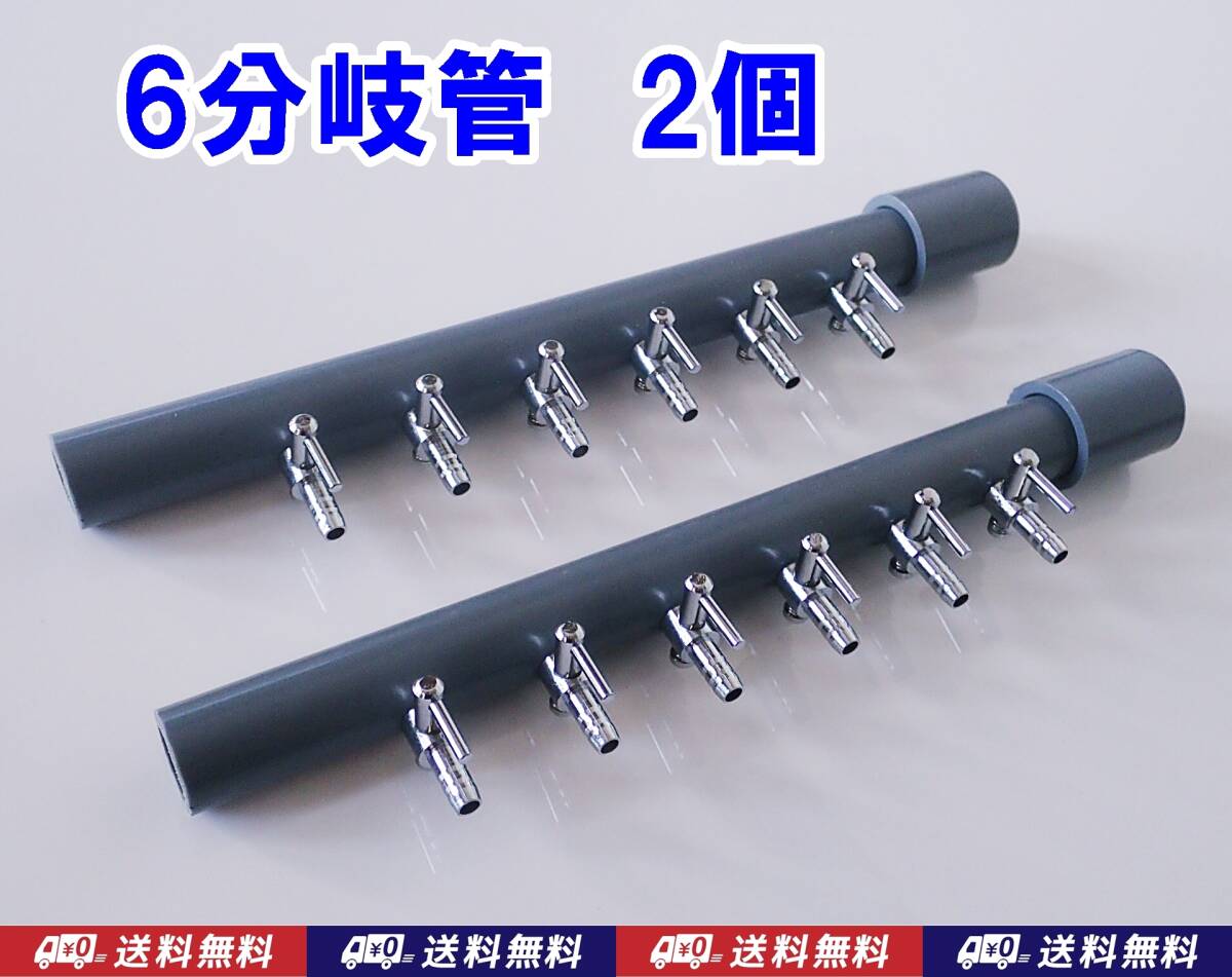 > 【送料込】ブロワ接続用 エアーコック 6分岐管 2本 一方コック6連1列 シュリンプ・金魚・メダカ水槽のエアー分岐に ポンプ圧調整に
