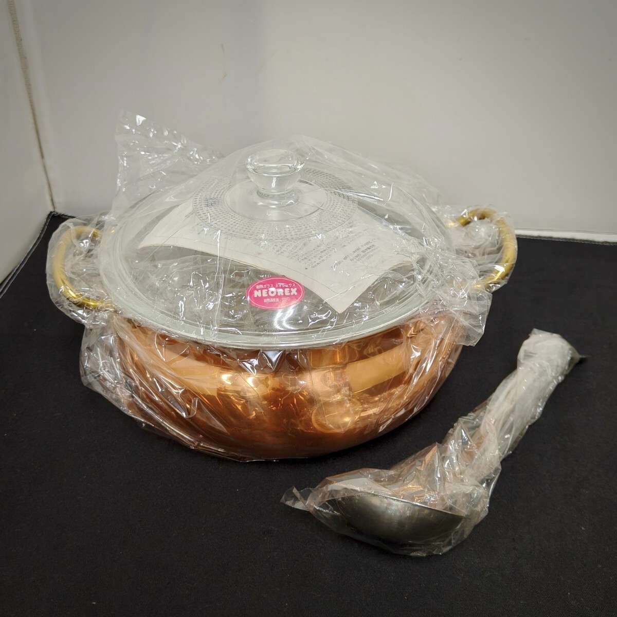 > ☆未使用品☆ 銅鍋 両手鍋 寸法21cm 容量2.8L 銅製 調理器具 ガラス蓋 鍋 鈴木製作所 輝シリーズ NEOREX 純銅鍋 (10137A
