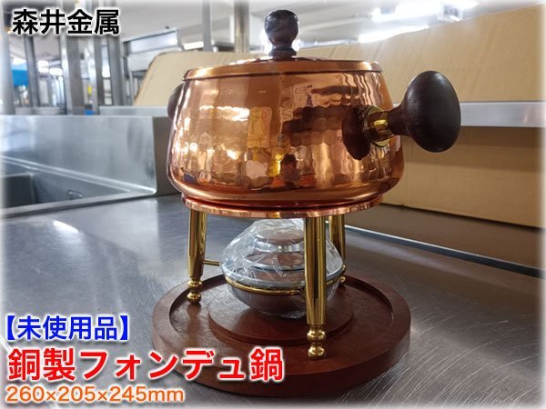 - 【未使用品】森井金属興業 銅製鎚目フォンデュ鍋 両手フォンジュ鍋セット C-505 容量1.2L 内面純錫メッキ CAFFERIA Copper Ware【長野発】