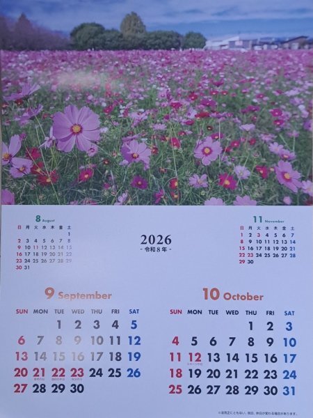 > 【送料無料:すぐに発送 :綺麗な「花畑」 カレンダー:A3 2026年】★癒される「花畑」:A3:42x30cm★花・フラワー はな 風景:壁掛け 暦