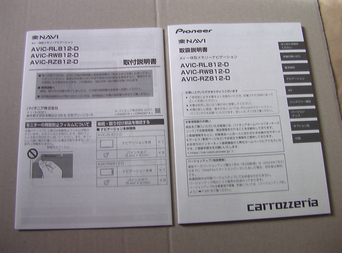 - カロッツェリア メモリーナビゲーション AVIC-RL812-D/RW812-D/RZ812-D 取扱説明書 取付説明書 2冊セット