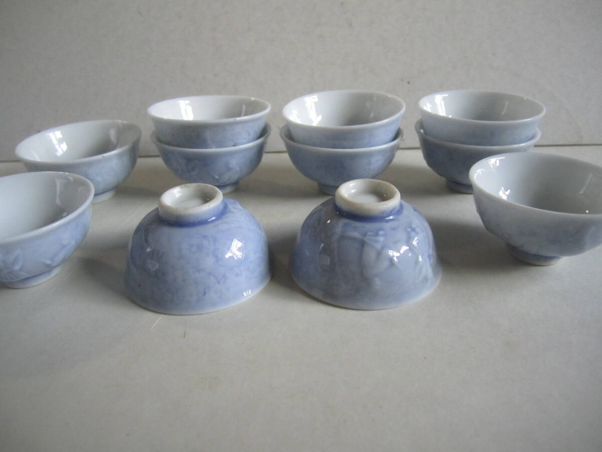 - 古い猪口 ☆希少 和歌 箒を持った翁 松の柄 12コ