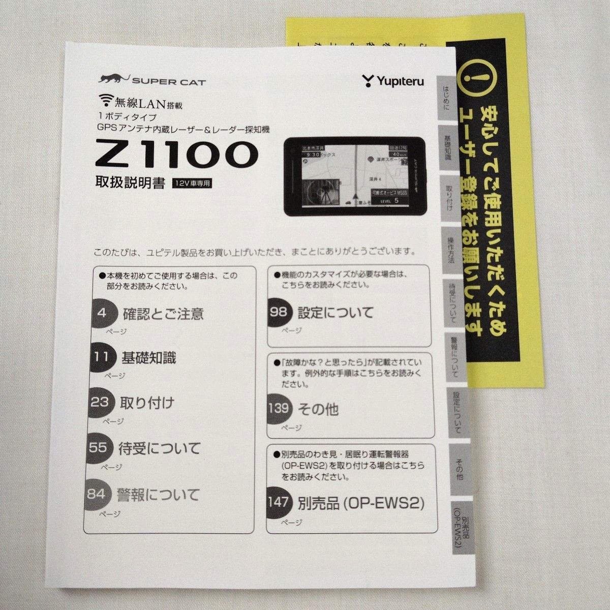 - ユピテル レーザー レーダー探知機 Z1100 取扱説明書 取説 スーパーキャット GPS