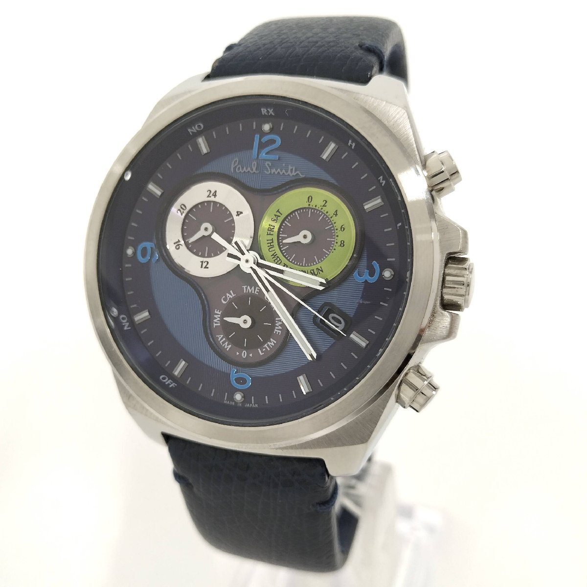 > ●ポールスミス E610-T021816 メンズ 腕時計 ブルー系文字盤 電波ソーラー 中古[ne]um1