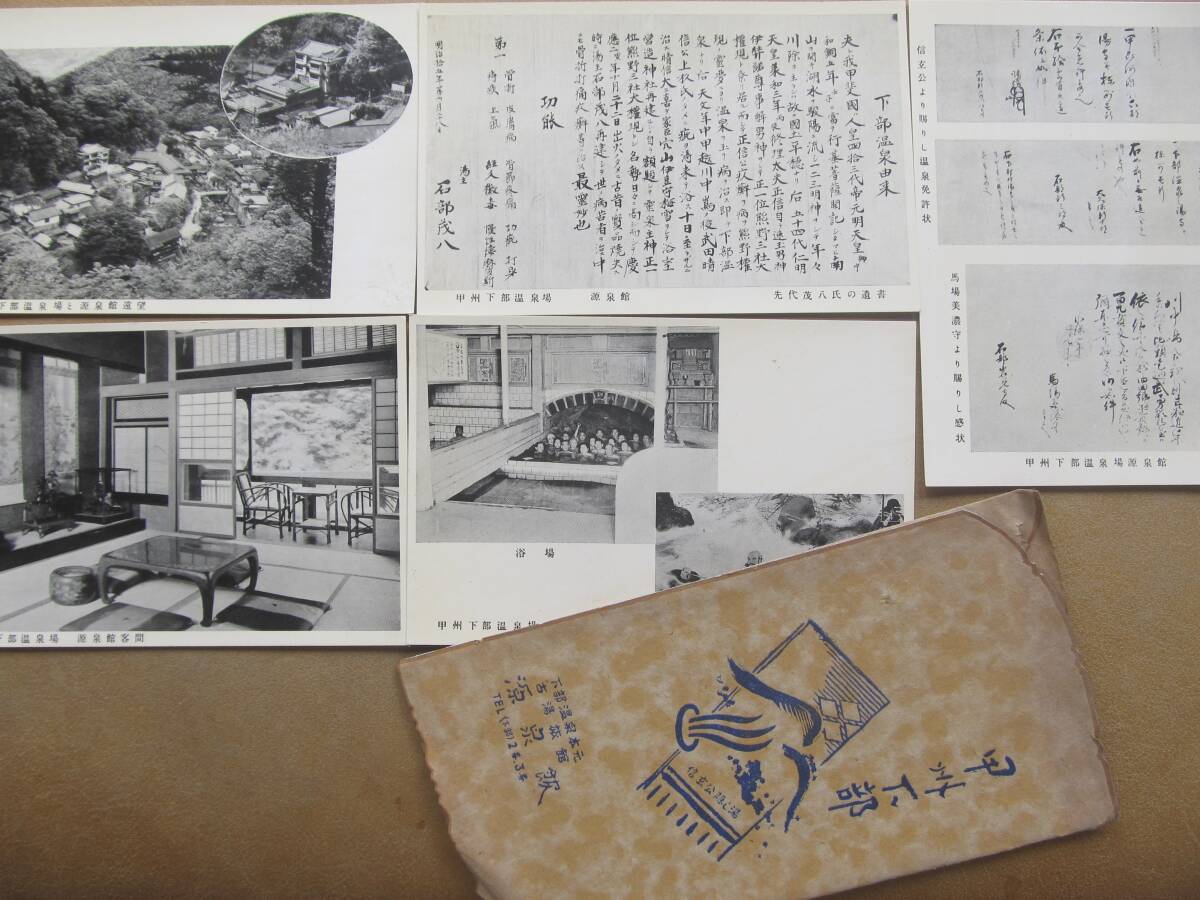 - 山梨 下部温泉 旅館【源泉館】絵葉書 5枚,袋 *昭和30頃*