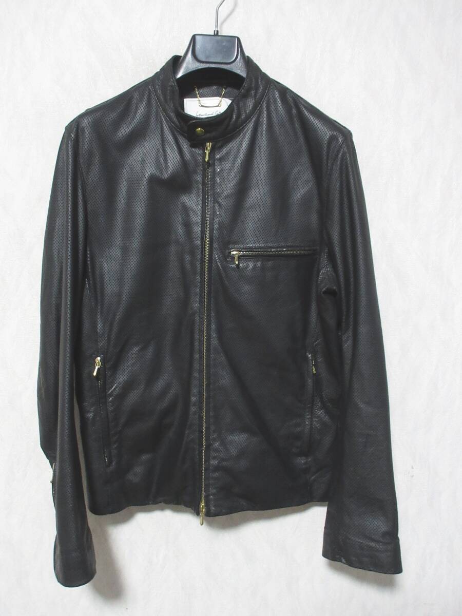 > BEAMS インターナショナルギャラリー ビームス シープスキン パンチング ライダースジャケット メンズ 48 ブラック kn2627