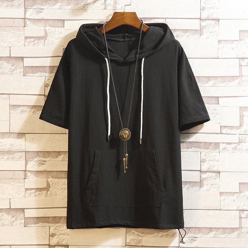 - シャツ メンズ Tシャツ カジュアル リネンシャツ 半袖 パーカー トップス 大きいサイズ 夏 薄手 ブラック 4XL