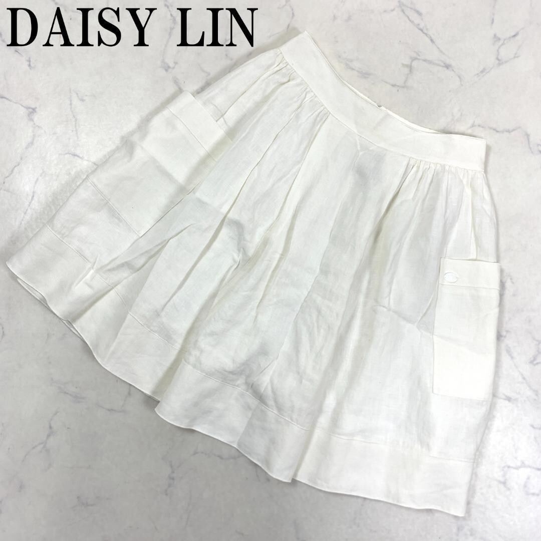- LA7438 デイジーリン DAISY LIN PARIS ポケット有 ギャザー リネン100% 麻100% フレアスカート オフホワイト 40