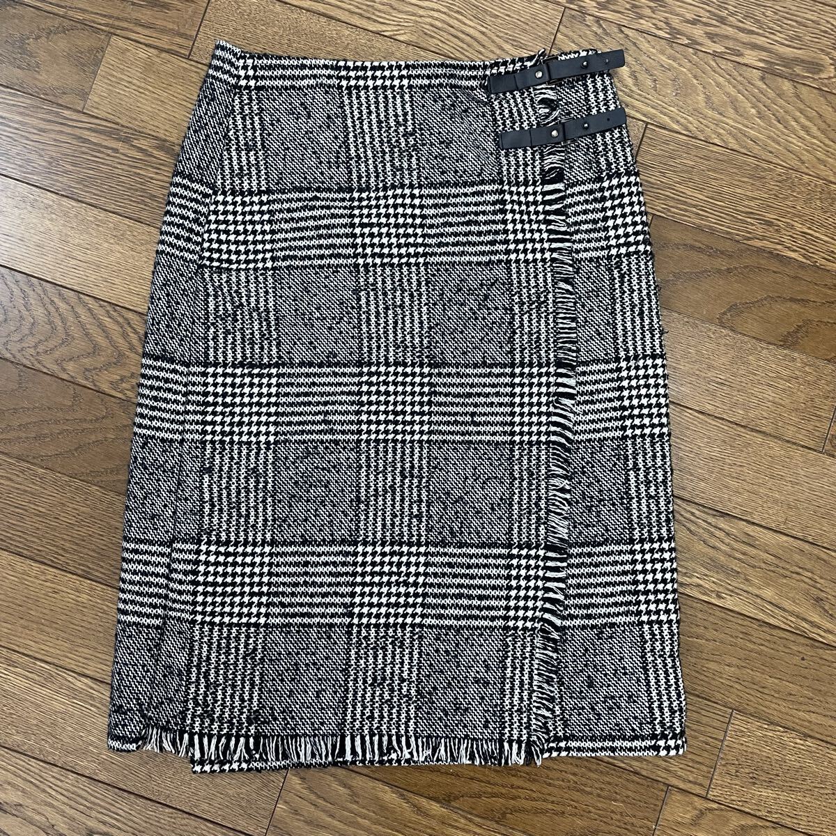 - スカート タイトスカート タイト 膝丈 グレー ツイード柄 ラップスカート