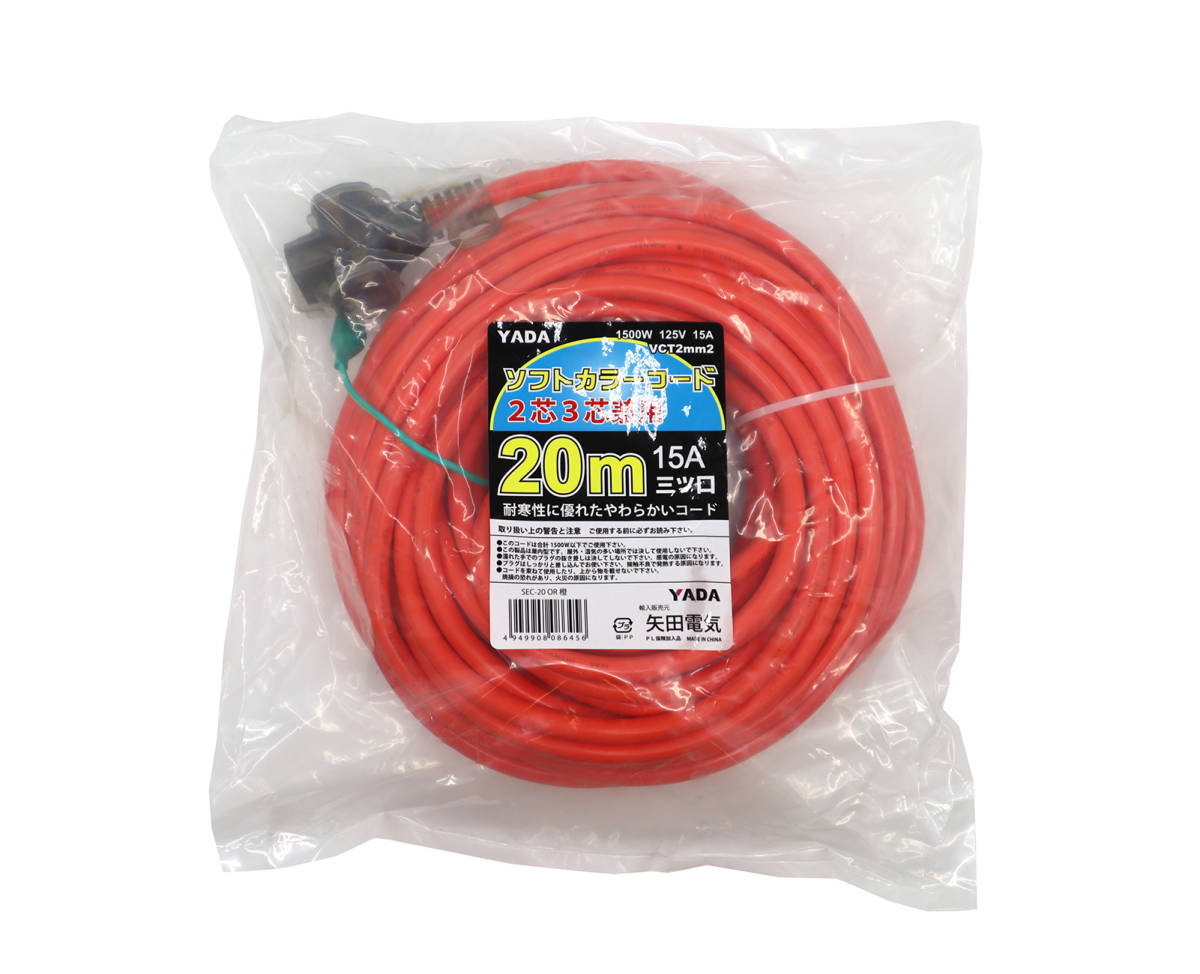 - 延長コード オレンジ 2芯3芯兼用 20M ソフト太コード VCT2mm2 アース付き オレピンプラグ ☆本州四国九州送料無料!☆