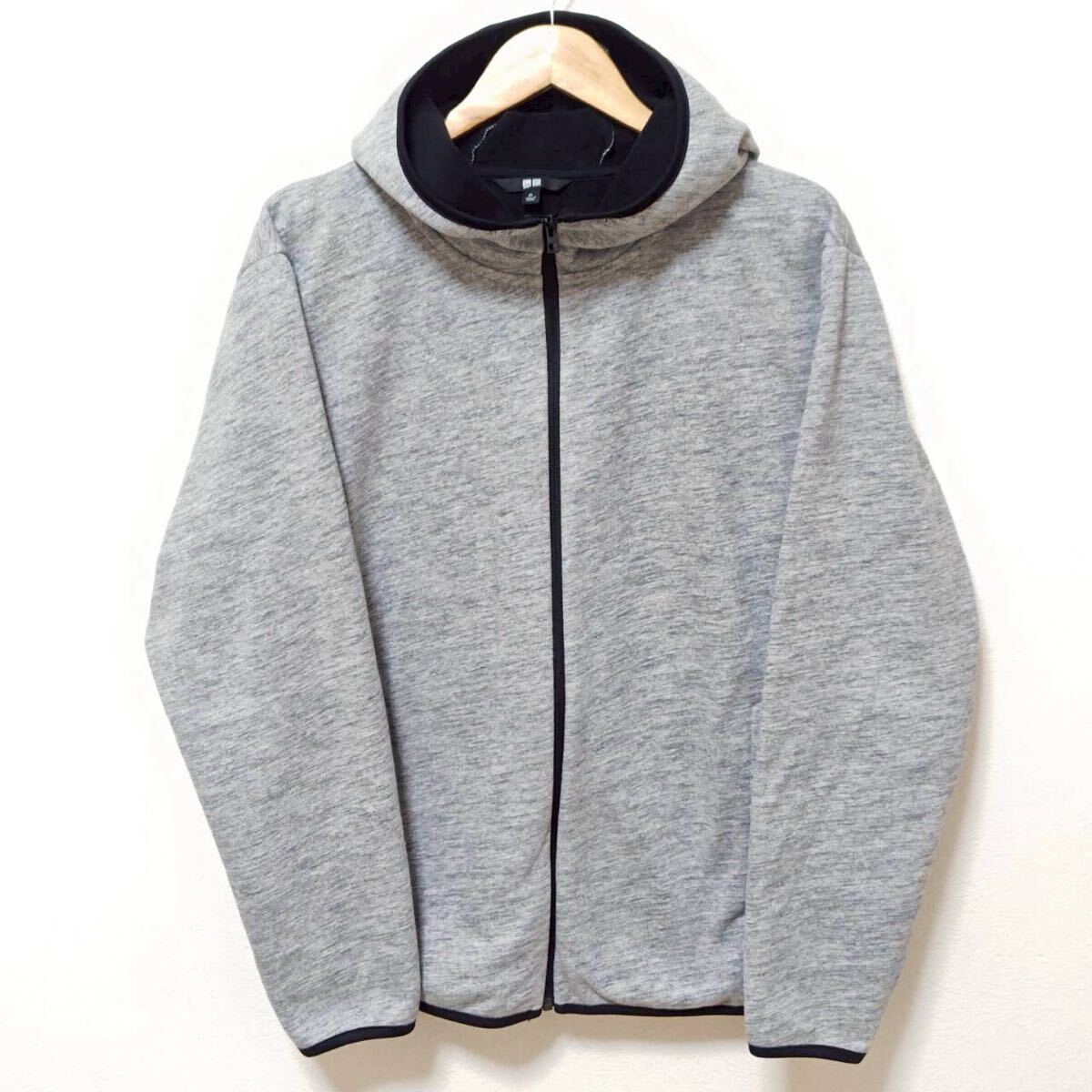 > ビックサイズ◎【UNIQLO】ユニクロ ブロックテックフリースパーカ フーディ ブルゾン 裏毛 デイリー メンズ グレー系 サイズXL/Y37017jF