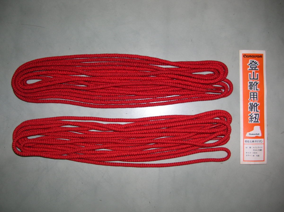 - キャラバン【登山靴用くつひも】丸ひも・長さ210cm★赤★2足分セット★CARAVAN