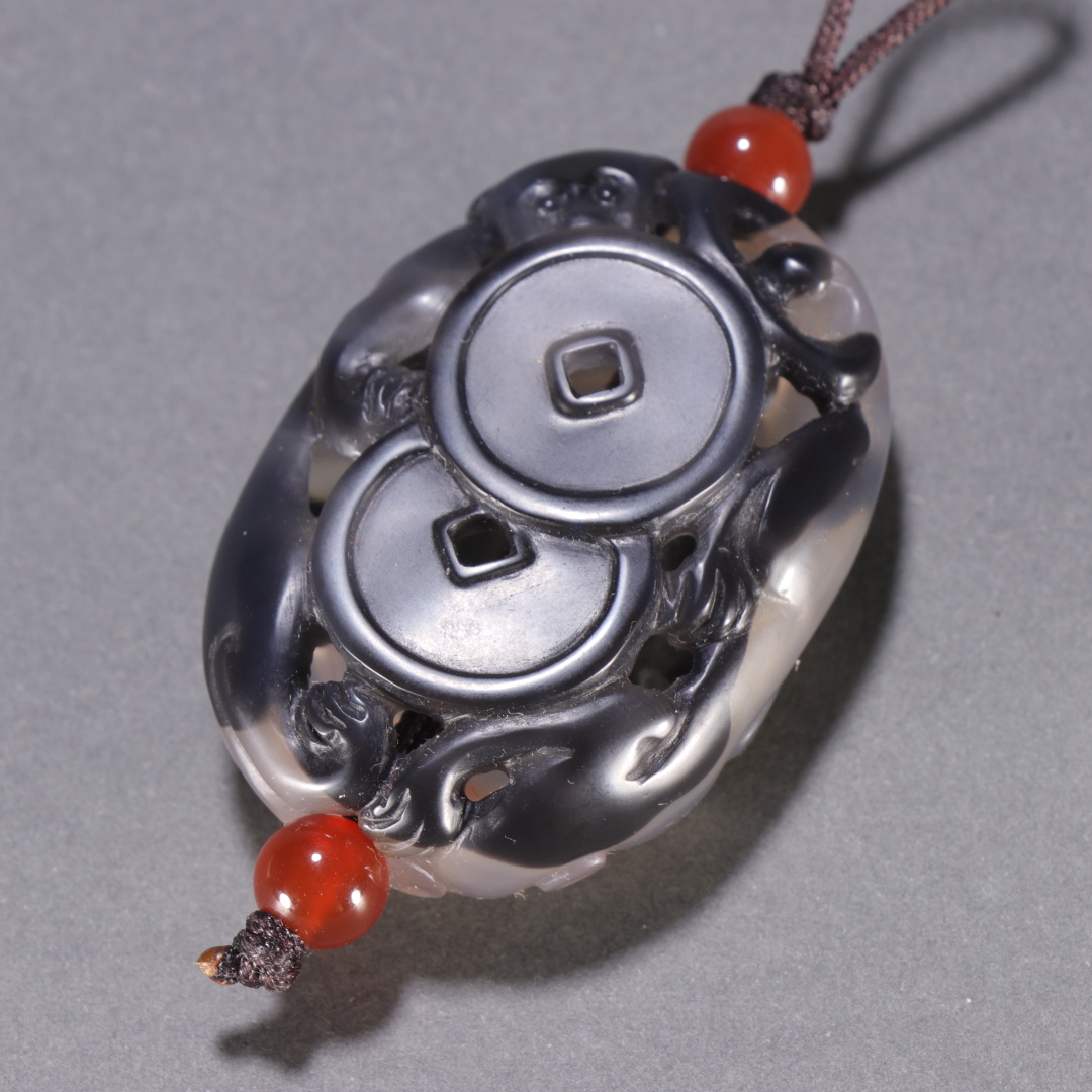 - ▽鴻▽ 清朝時代 瑪瑙彫 招財進宝香嚢 時代物 中国古美術 骨董品