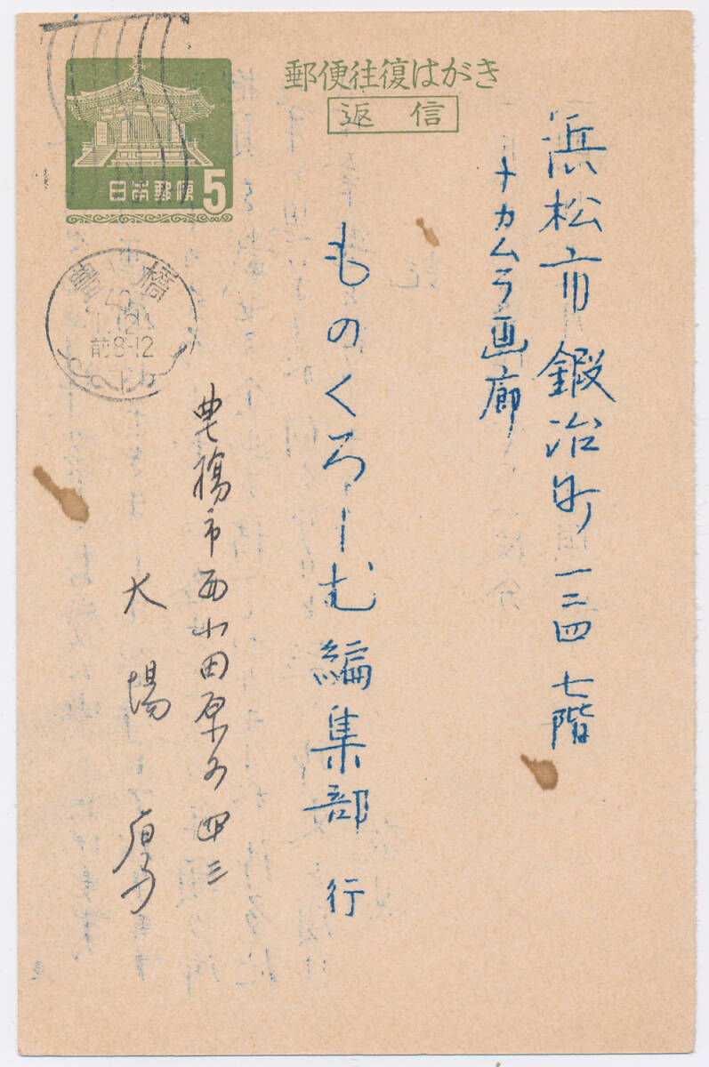 - ■大場厚 直筆葉書/昭和40年、ペン書き、洋画家、真作