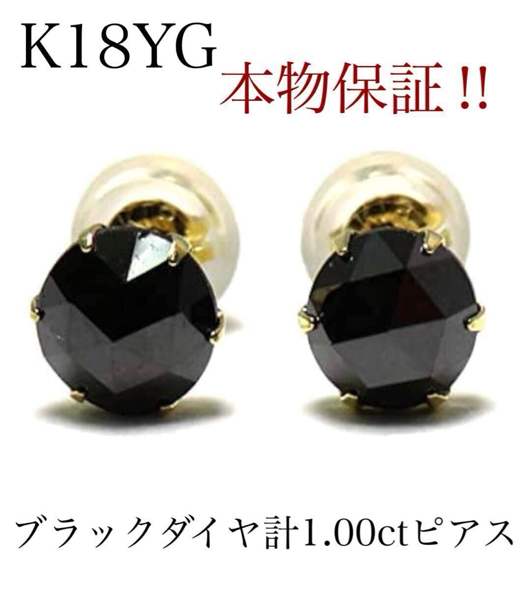 - 【本物保証】K18YG ブラックダイヤモンド ピアス 計1.00ct 各0.5ct 鑑別カード付 18金イエローゴールド製 新品未使用