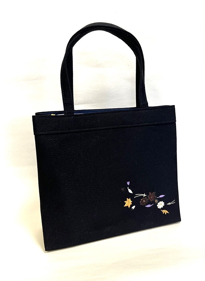 - 花とら●リサイクル和装小物 着物バッグ 和装バッグ 黒 ちりめん 吹寄せ 和柄 ほぼ未使用 250921