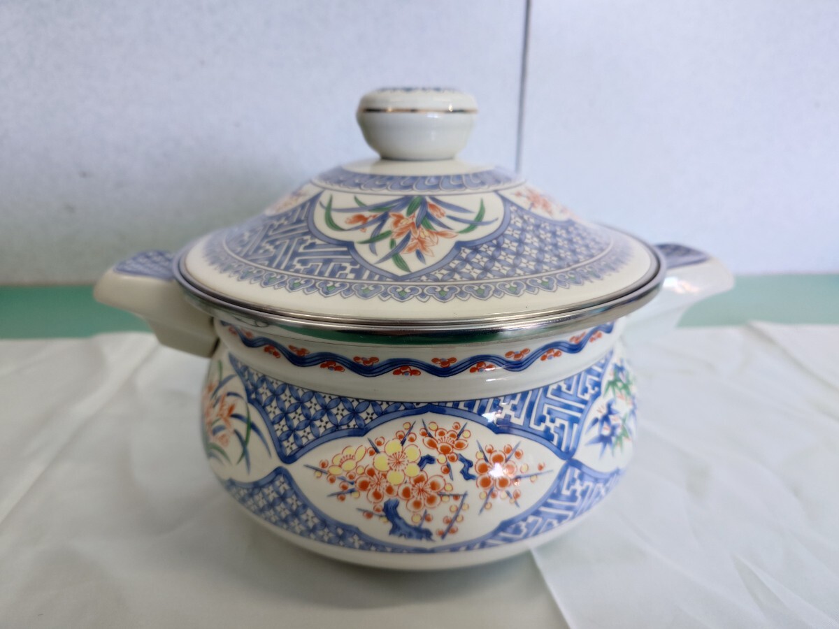 - ● レトロ ヴィンテージ 当時物 サンコーウエアー ミッチロイヤル 高級 ホーロー 鍋 20㎝ 紗綾形/七宝つなぎ/四君子 崩れ 梅 蘭 竹 模様 ③