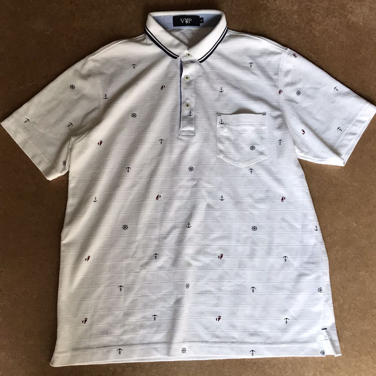 > 7-6 プレイボーイ 舵輪 碇柄 ステアリングホール ポロシャツ ホワイト PV PLAYBOY メンズL