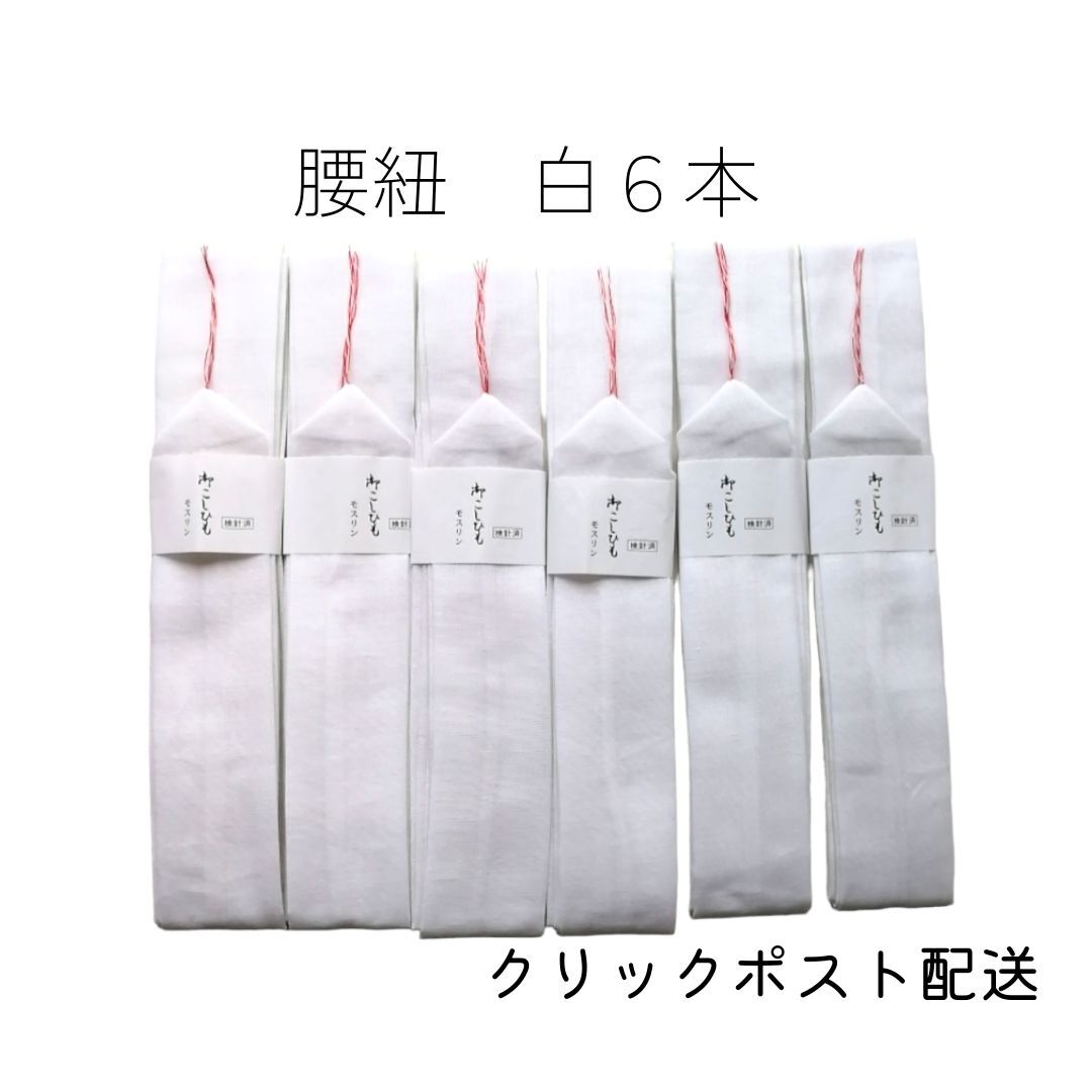 - 着物通☆ モスリン腰紐 6本セット【白】食い込みにくい太幅 着物 着付け小物 クリックポスト 送料無料