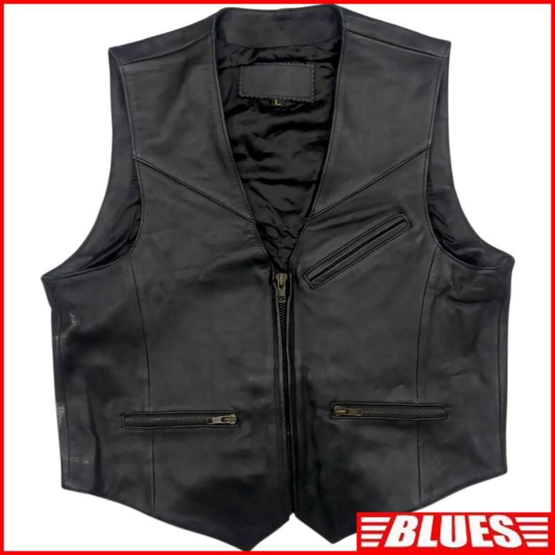 - 即決★N.B.★メンズ L レザーベスト ジレ ベスト 黒 ブラック 牛革 カウレザー 本革 ライダース 皮 パンクロック ライディング ツーリング