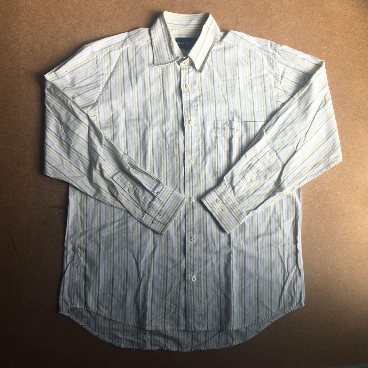 - マリオヴァレンチノ ストライプシャツ 麻混 レギュラーカラー 長袖シャツ イエロー グリーン
