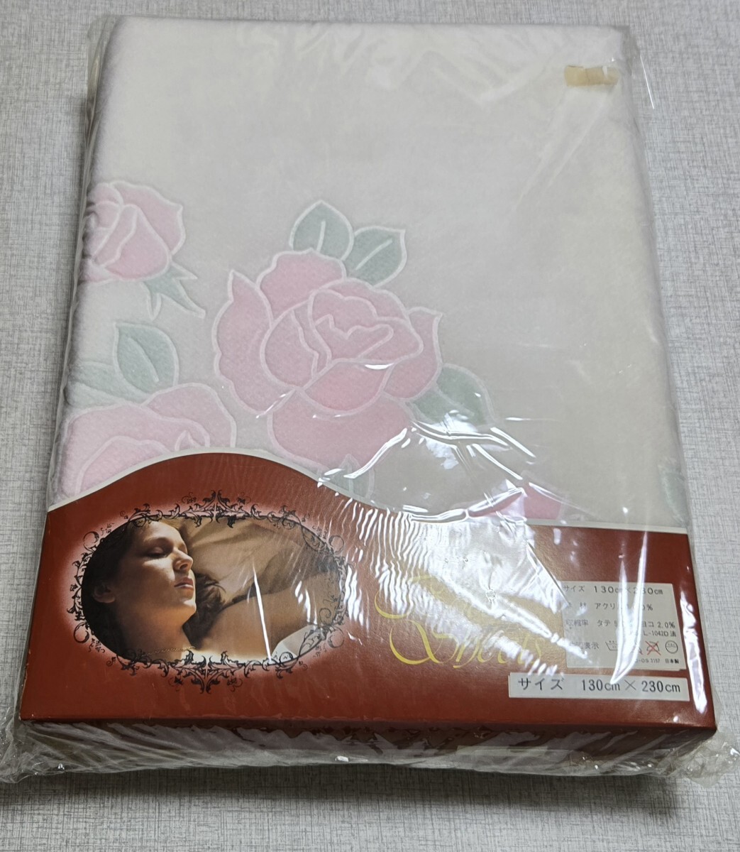 - 新品 未使用 ボアシーツ 白 ホワイト バラ 花柄 毛布 寝具